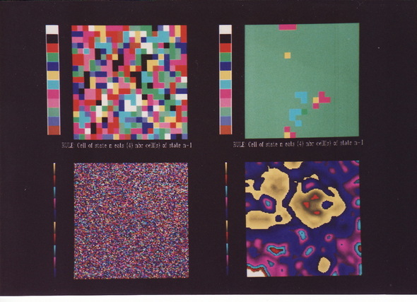 Cellular automata (top: coarse grid, bottom: finer grid) - most likely based on the 1988