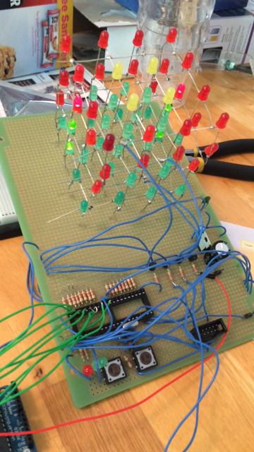 Here are some pictures of a project that my son did for his high school electronics class. It is an Ardunio Duemilanove board controlling an LED cube.