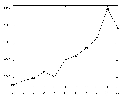 0) 3275.04006944 1) 3408.17386152 2) 3495.83317411 3) 3655.28416597 4) 3534.66402797 5) 4027.3778629 6) 4140.53521925 7) 4356.96326184 8) 4643.39795774 9) 5505.60795537 (bogus due to split across periodic BCs) 10) 4956.31038353 (bogus due to split across periodic BCs)